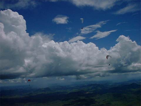 雲り空でもサーマルは有るぞ!さすがのPWCパイロット!今日みたくコンディションの渋い時は一人でサーマルを探すと効率が悪い。上手いパイロットが三人以上集まればサーマルのない所でも作る事が可能ではないかと思うぐらい。おまけに、ブラジルにはウルグゥーという日本でいうトンビみたいなやつがいてですな、こいつがまた上昇気流にのって多い時で30羽ぐらいで群れているんだわこれが!サーマルポイントには必ずいますね。そういえば、ブラジルで飛んでいたらいろんな鳥と出会うなぁ〜。尻尾の長いやつとか、、、まるで、野鳥の王国みたい。